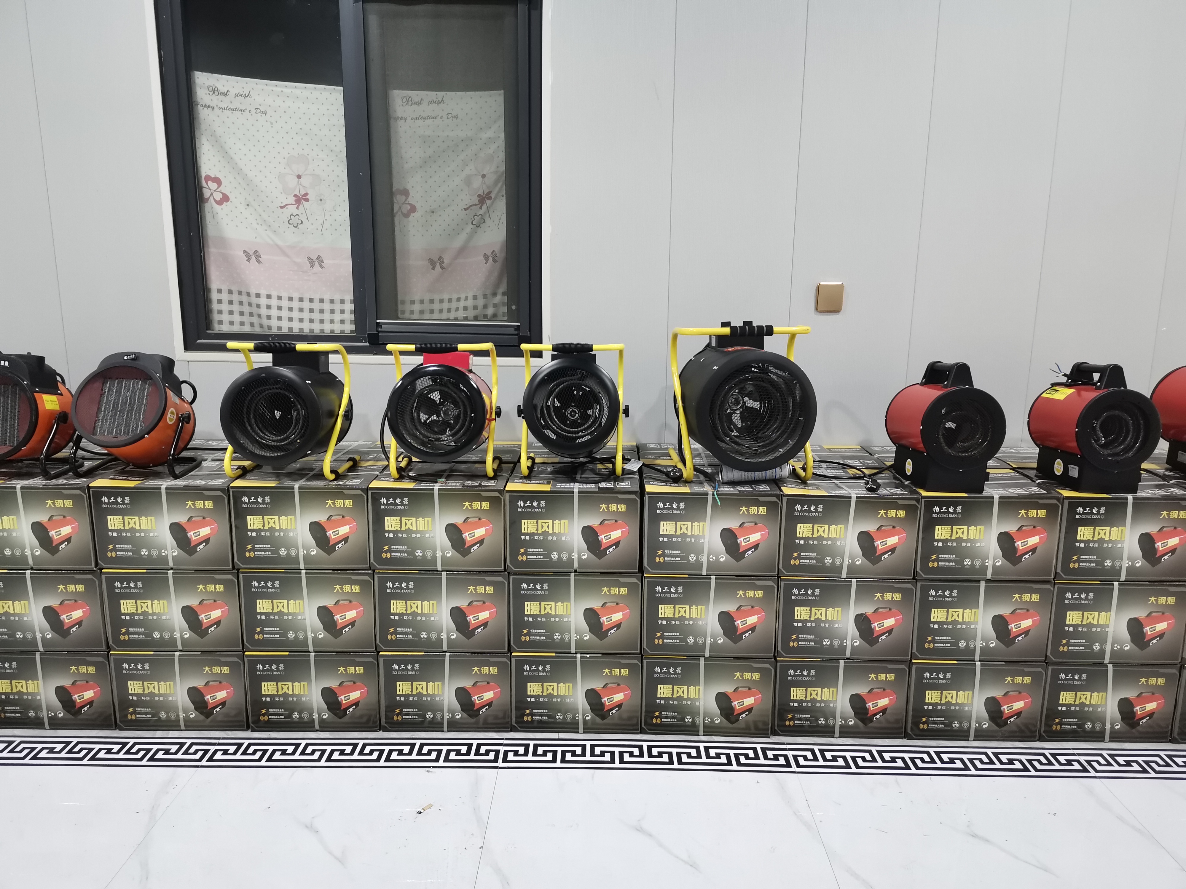 1、大棚暖風機款式美觀大方,占用空間位置小,可移動周轉使用。暖風機油箱加上柴油接上照明電就能工作,因此便捷好用。
